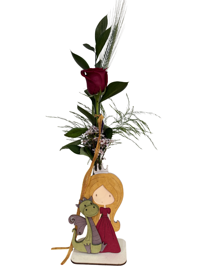 Base de princesa con dragón de fieltro, el conjunto tiene una altura aproximada de 40 cm